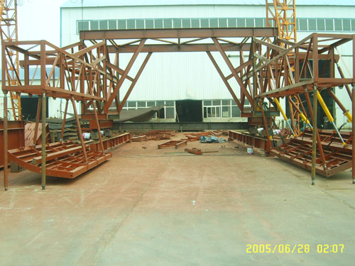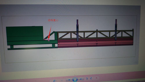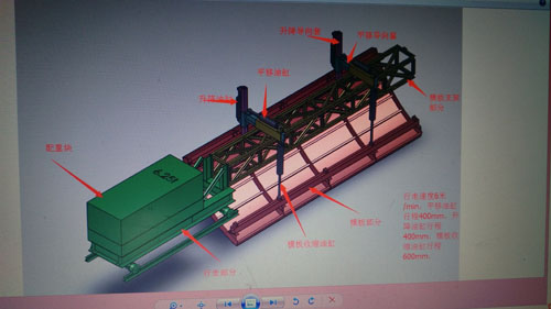 結構∶液壓驅動自行式移動棧橋,主要由前橋、主橋、后橋、前段支架、后段支架、行走驅動裝置、行走支架七個部分組成。